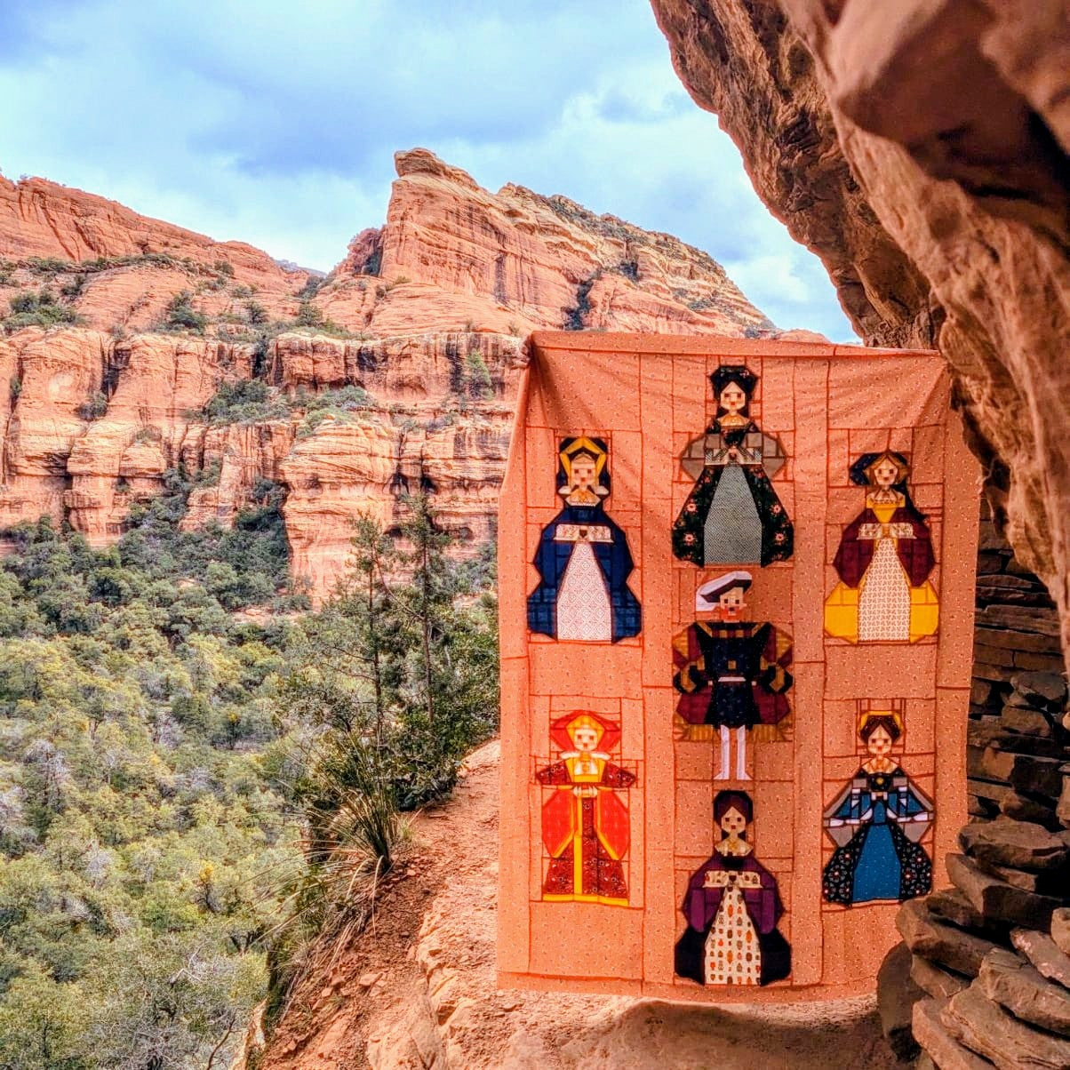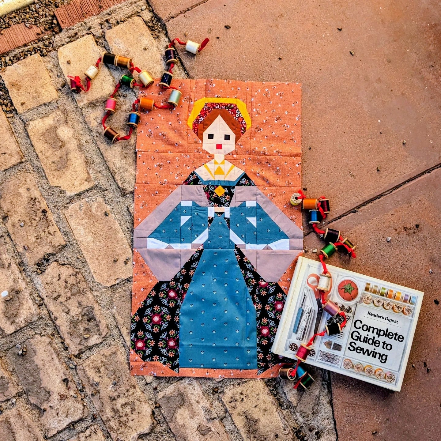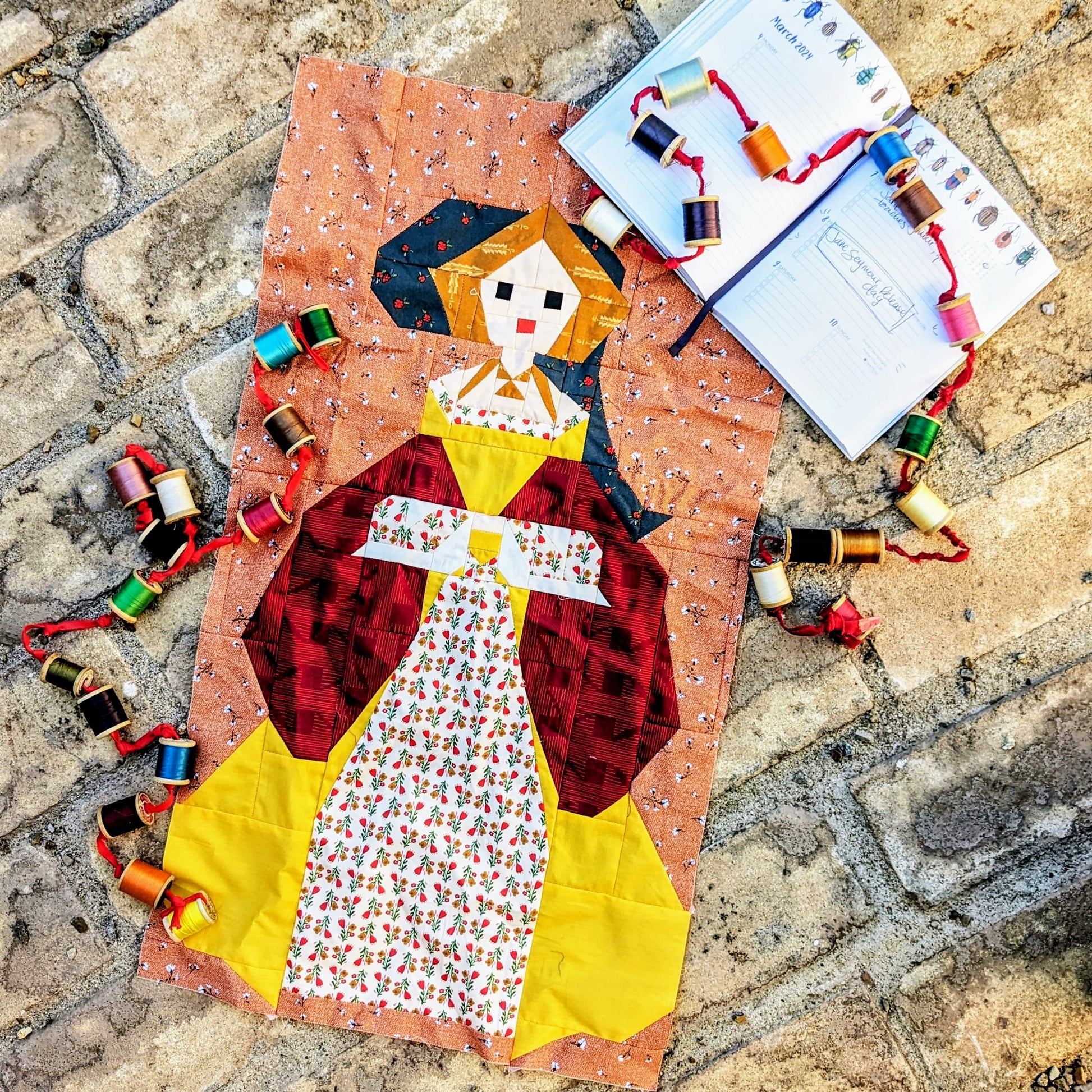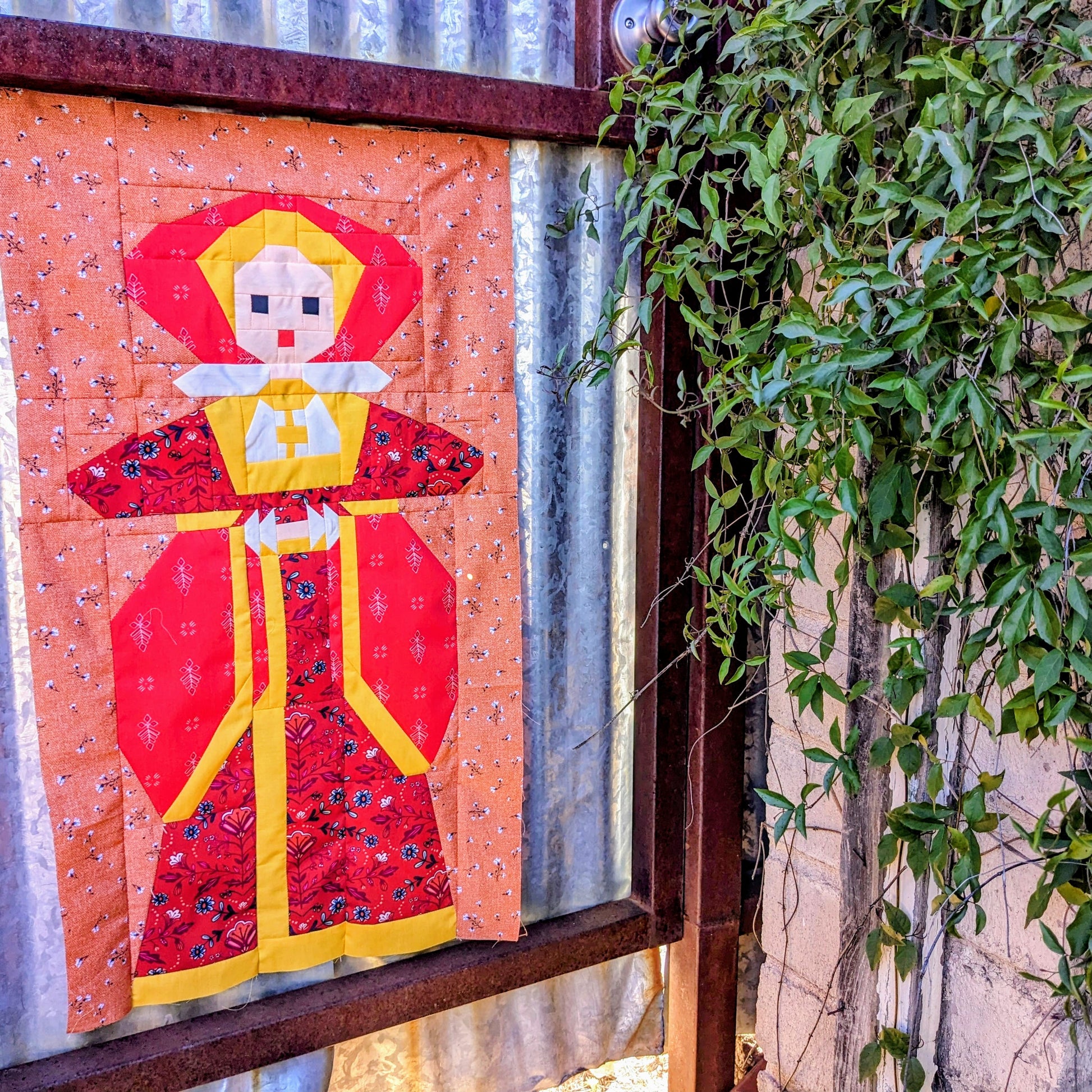 This is a PDF pattern to make the Ex-Wives quilt. Pattern includes the following blocks: Catherine of Aragon, Anne Boleyn, Jane Seymor, Anne of Cleves, Catherine Howard, Catherine Parr, and Henry VIII. Pattern also includes directions to make a decorative rose and put quilt together.
