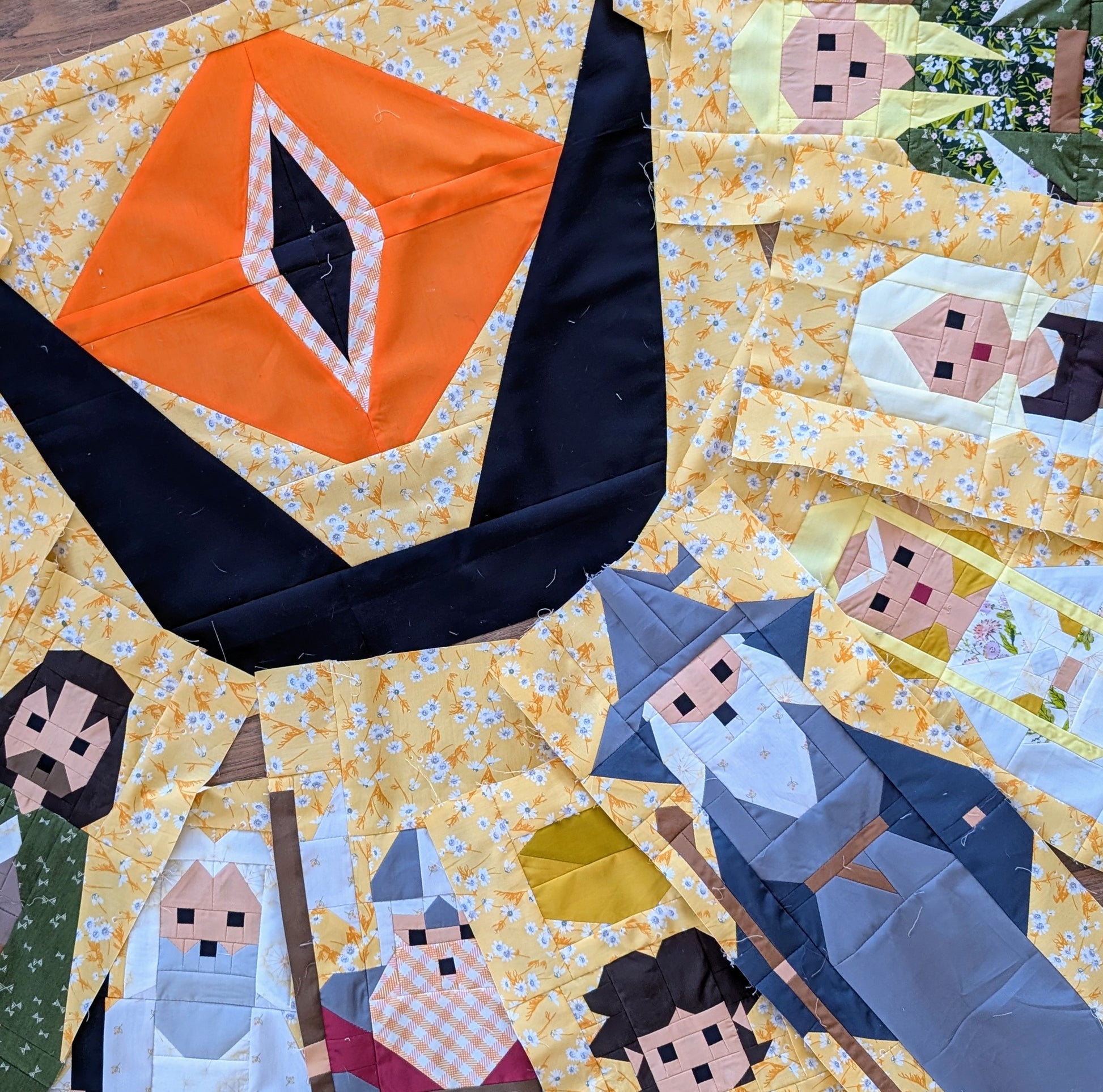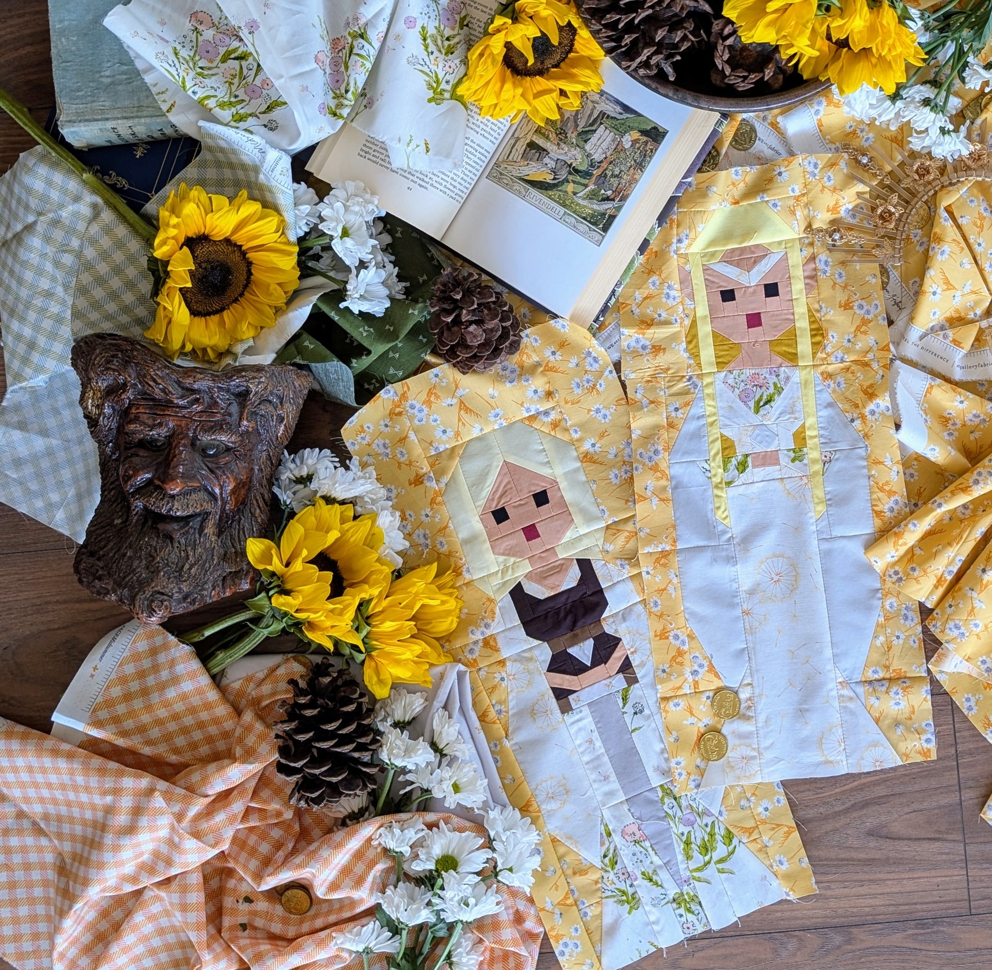 PDF pattern to make the Princess Knight, a block that is part of the High Fantasy quilt series. Pattern contains instructions to make a 9.5 x 21.5 quilt block using traditional piecing methods, such as stitch and flip, half triangle rectangles, and small piecing. While intermediate skill level is recommended, a confident beginner can make this block.